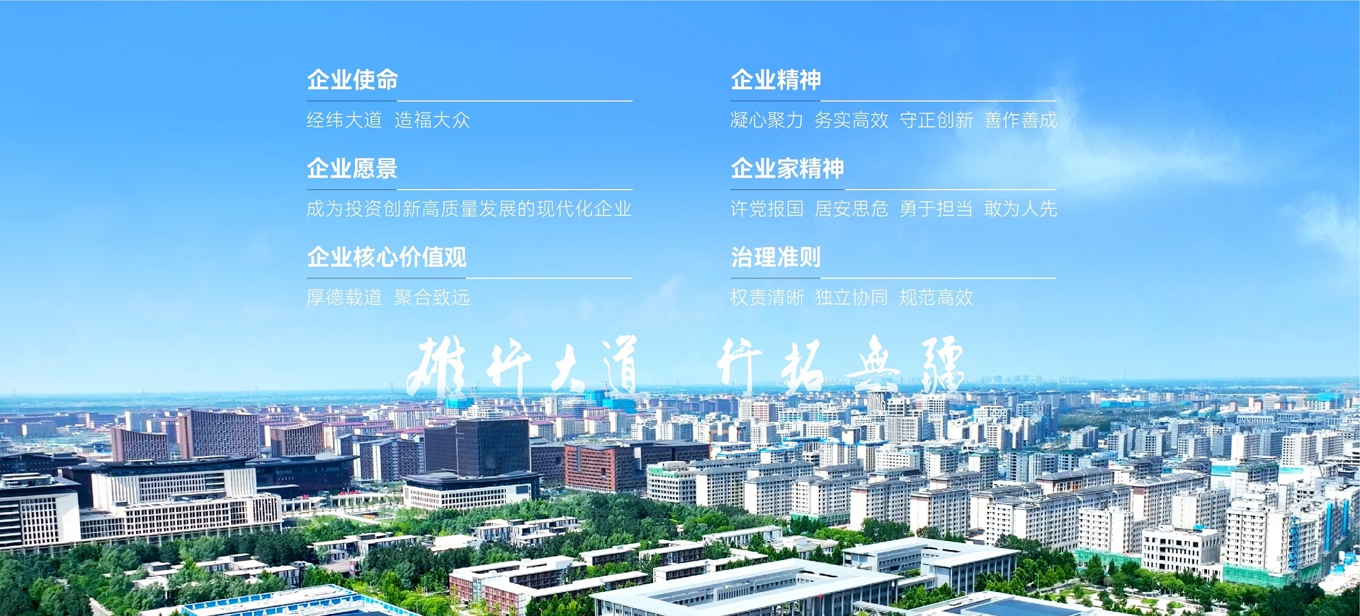 踐行"雄行大道 行拓?zé)o疆"的文化理念,以"經(jīng)緯大道,造福大眾"為使命